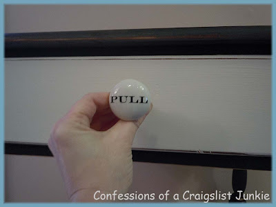 As you can see though, it's missing hardware on the drawer. That's where I need your help. I didn't want to use the original hardware because I didn't think it fit the new look. But I can't make my mind up about what to replace it with!